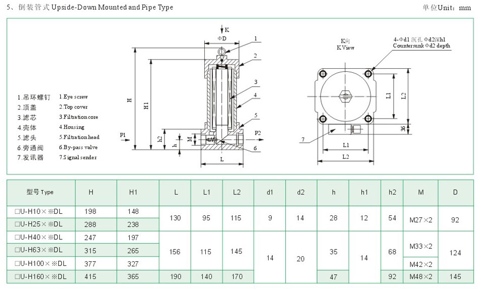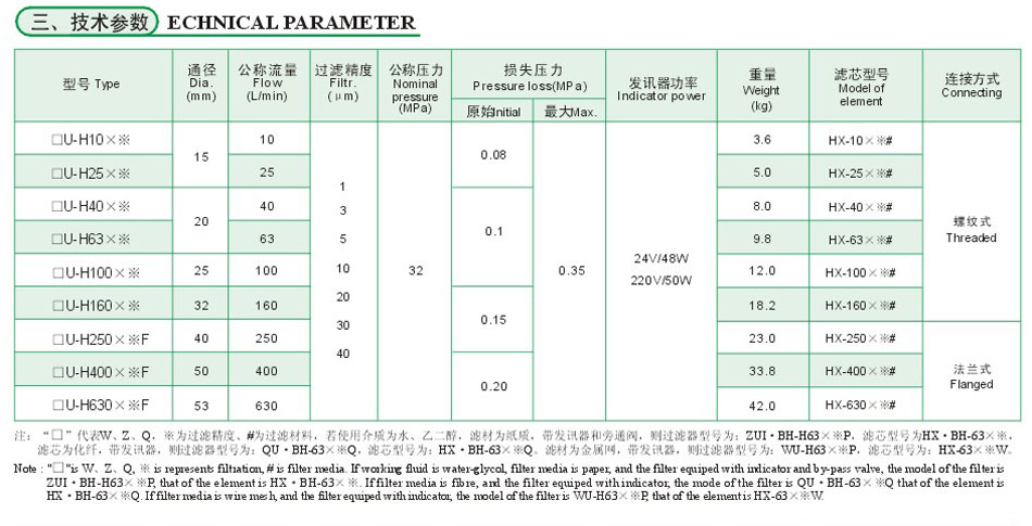ZU-H壓力管力過濾器安裝在液壓系統的壓力管路上,用以濾除液壓油中混入的機械雜質和液壓油本身化學變化所產生的膠質、瀝清質、炭渣質等,從而防止閥芯卡死、節流小孔縫隙和阻尼孔的堵塞以及液壓元件過快磨損等故障的發生
